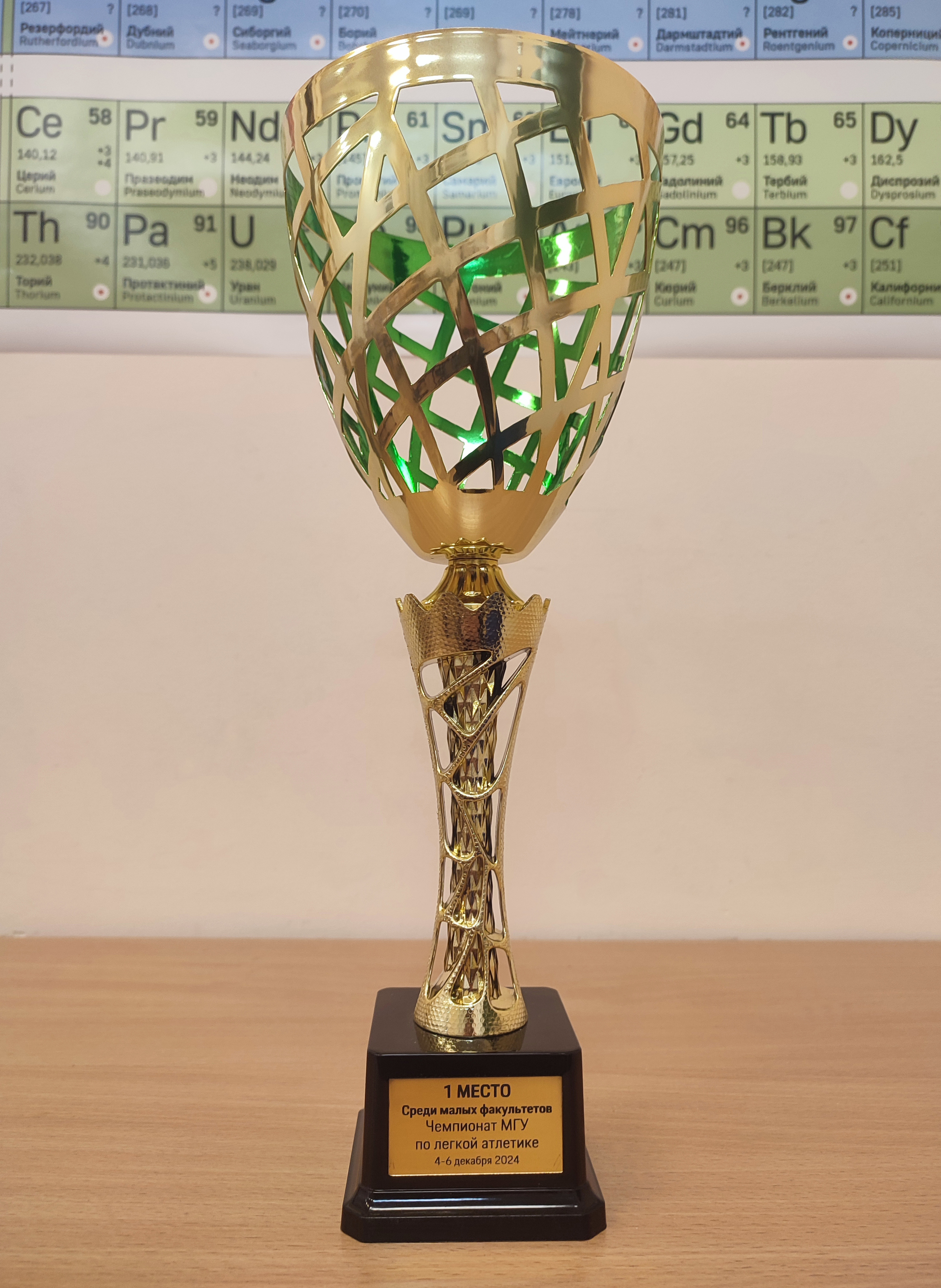 04.09.2024. 2 сентября прошло награждение студенческих коллективов за участие в 83-й Спартакиаде учащихся МГУ в 2023/24 годах. Факультет наук о материалах занял первое место среди малых факультетов, а в общем зачёте занял 18-ое место среди 38 факультетов МГУ.